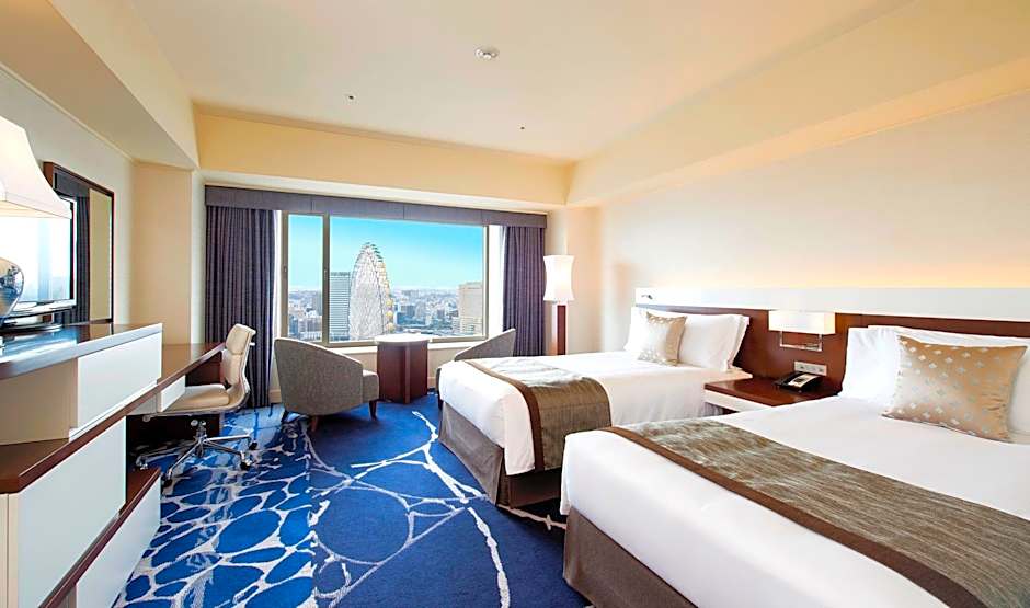 This twin room has an electric kettle, LCD TV with satellite channels and mini-bar. Slippers and a wide variety of toiletries are included. 2 small double beds (47 in wide) are provided, and sea views are featured.